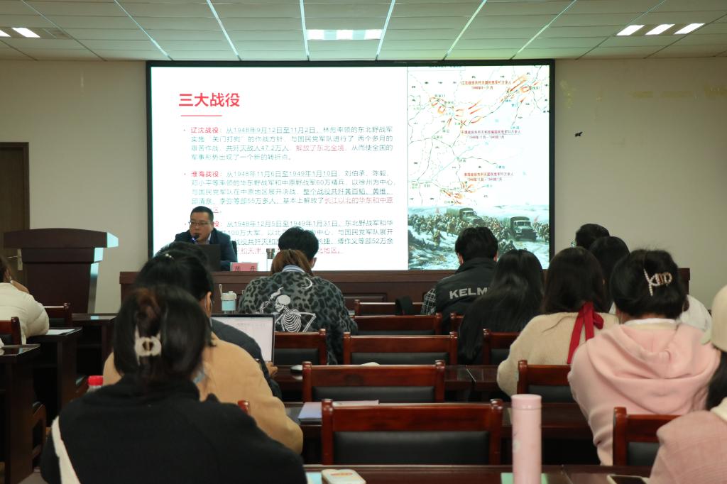 陈丹董事长以孔子《论语· 卫灵公 》中“君子求诸己,小人求诸人”这句话开场,回顾了党的百年历史。随后,从抗美援朝、三大战役等历史事件中,向同学们阐述“中国共产党为什么能、马克思主义为什么行、中国特色社会主义为什么好”。最后,陈丹董事长将党的奋斗历史与老员工就业、创业以及个人素养的提升结合起来,勉励同学们继续向前努力。