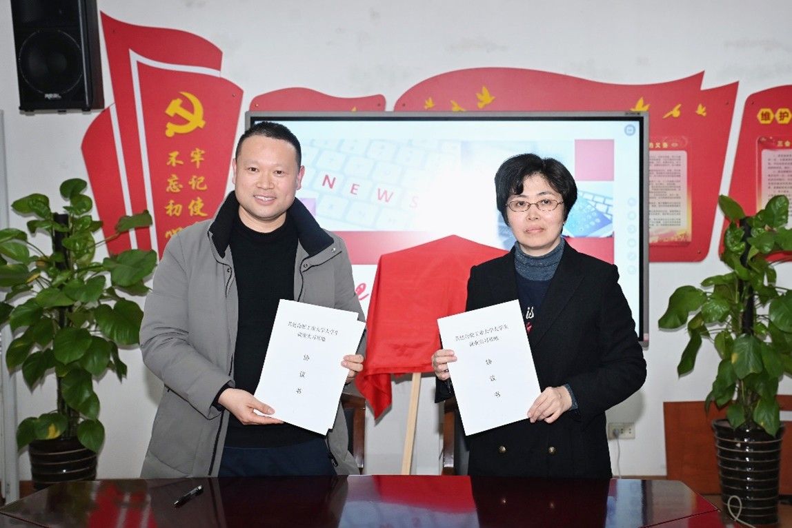 双方签署《党建联建项目合作框架协议》,并为老员工就业实习基地揭牌。