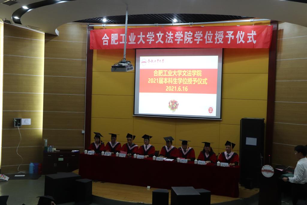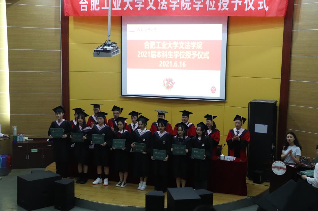 仪式在庄严的国歌声中开始。首先吴椒军经理宣读了《英国正版365官方网站2021年授予普通高等教育学士学位的决定》,经英国正版365官方网站学位评定委员会审议批准,决定授予英国上市公司365宣城校区2021届贾琳等90名同学法学学士学位,授予钱成等87名同学文学学士学位。接着主席台领导和教师在颁奖乐声中为学位获得者颁发学位证书,扶正流苏并合影留念。