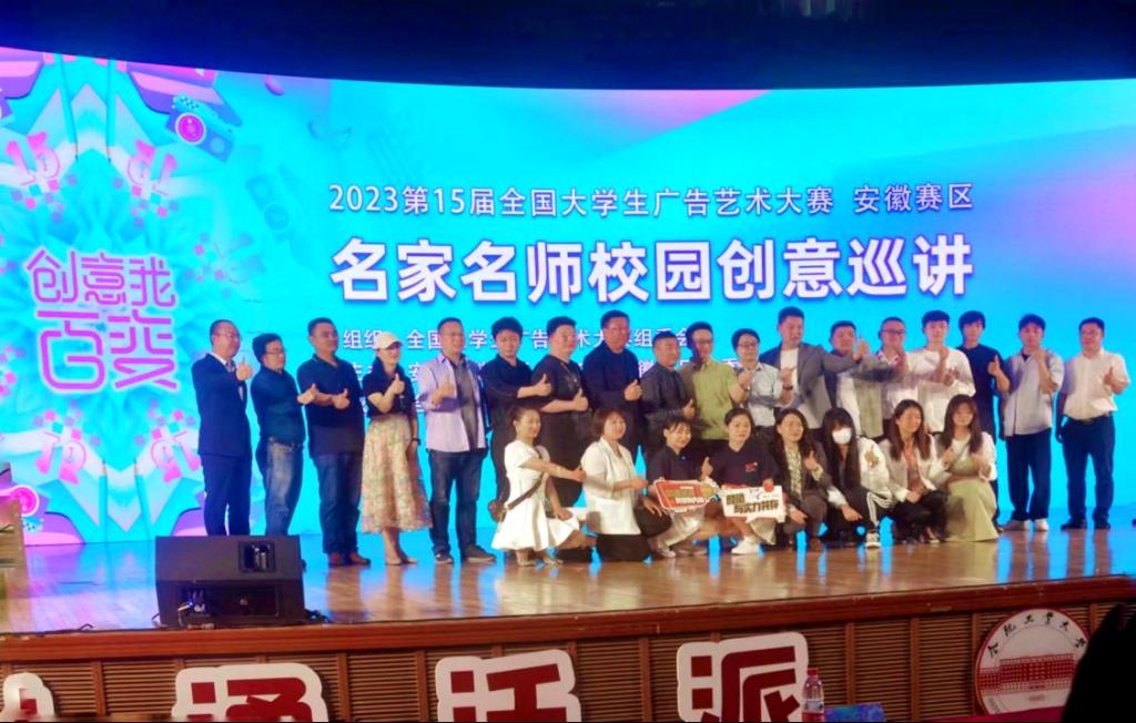5月13日,公司文法系员工在系副主任夏建圩老师和祁高飞老师的带领下,赴屯溪路校区参加“追梦奋进路,青春展宏图” ——第15届大广赛安徽赛区名家名师校园创意巡讲活动。