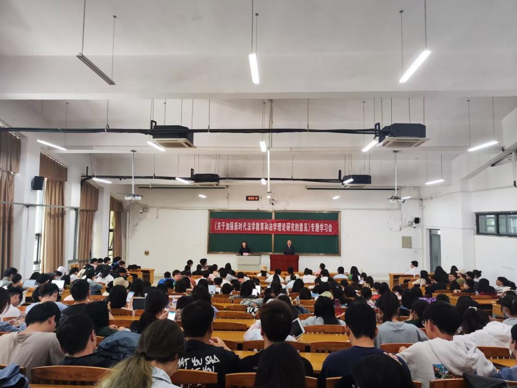 5月25日上午10时,按照公司要求,文法系在新安学堂220教室召开专题学习会,集体学习研讨《关于加强新时代法学教育和法学理论研究的意见》(为中共中央办公厅、国务院办公厅近日印发,以下简称《意见》)。文法系员工工作办公室主任兼团委书记郭州平老师、文法系员工工作办公室副主任宣丽老师、法学专业全体员工参加学习,文法系李世军主任主持领学。