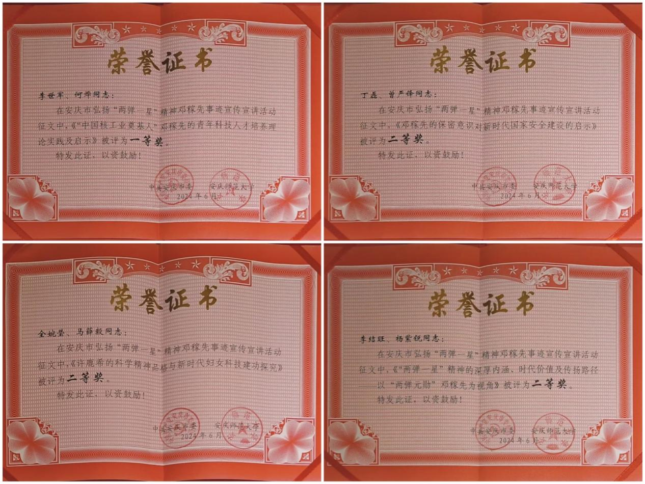 此前,组委会从全国180余篇参加邓稼先诞辰100周年纪念论文比赛中,共评选出一等、二等、三等奖作品共30件,并邀请获奖者出席现场宣讲活动。公司文法系员工提交的5件作品,获得一等奖1项,二等奖3项,获奖率、获奖层次与获奖总量均居全国高校之首,彰显公司在赓续红色血脉、传承红色基因,尤其是弘扬“两弹一星”精神和新时代科学家精神上的突出成绩。获奖作品,深情回顾了邓稼先的科研生涯和爱国情怀,以及他为祖国“两弹一星”事业做出的卓越贡献。作品以新时代老员工的视角,彰显民族复兴大任的时代新人的责任担当,传承弘扬以邓稼先为杰出代表的老一代科学家的“两弹一星”精神。
