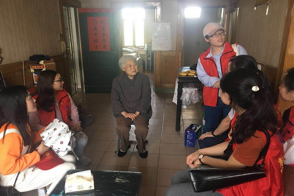 15:00公益活动的志愿者在西门站点集合,统一着装并在志愿工作人员的组织下分成了几个小组,每组5-7人,随后在志愿工作负责人的带领下,分别前往各社区送关爱的老人家中。同学们把慰问品送到老人手中,陪她们聊天,关心她们的日常生活和需要,还为老人们打扫和收拾了房间。老人家们对于同学们的到来感到高兴也表示感谢,对志愿者们的工作给予了充分肯定。