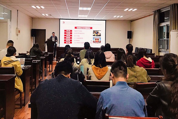 顾安祥老师从回顾党的一大到十九大的光辉历程、坚定理想信念、坚守初心和使命三个方面详细阐述“学党史、守初心、担使命”的内涵和意义。