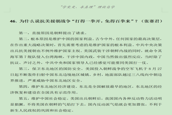 通过寻找答案,党员们有了进一步的认识,如对于为什么说五四运动是新民主主义革命的开端,解答1-8题的陈慧仁同志认为,虽然革命任务仍然是推翻帝国主义与封建主义,但五四运动之后革命领导者已经不再是农民阶级和民族资产阶级而是无产阶级。既然如此,反帝反封建革命就成为新民主主义革命。对于为什么说抗美援朝战争“打得一拳开,免得百拳来”,解答41-48题的张赛君同志认为,根本原因是维护中国的国家利益,保卫东北地区的国防安全和经济建设,不将美国在朝鲜的气焰打下去,国内反动派气焰就会更加嚣张,不利于新生人民政权的巩固和社会稳定。对于为什么要把党的政治建设摆在首位,解答111-117题的童瑞同志谈到,把党的政治建设放在首位,是党加强自我改造、保持自身活力的前提要素,是党在不同的历史时期领导人民群众推动中国发展进步取得成功的重要经验,是完成“两个一百年”奋斗目标、实现中华民族伟大复兴的中国梦的必然要求。