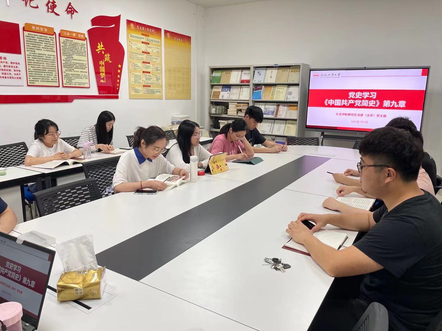 2021年7月7日晚8:30,英国上市公司365研究生法律(法学)党支部在公司410会议室组织本周党史学习专题会。学习内容为《中国共产党简史》第九章。