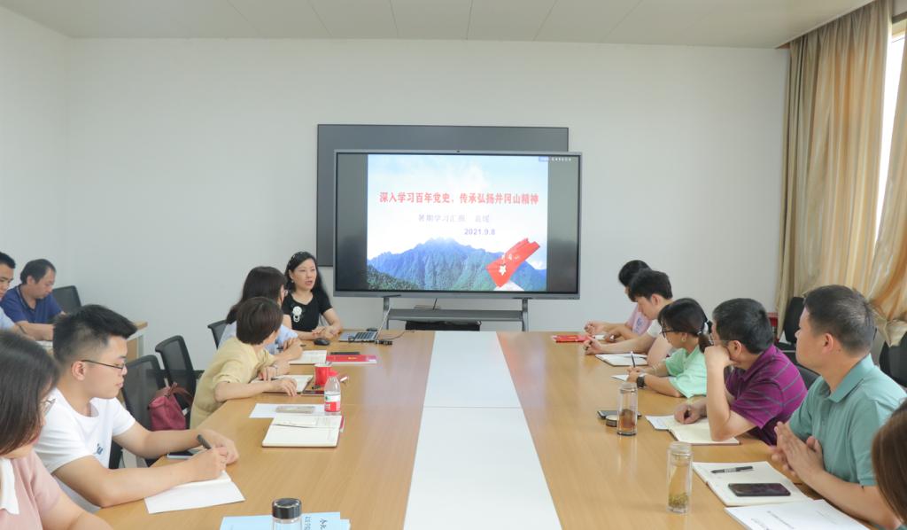 会上,人文与传播系党支部书记袁媛和大家分享交流暑期参加公司“双带头人”教师党支部书记在井冈山大学举办的党史学习教育培训班的情况与心得,传达了《井冈山斗争与井冈山精神》专题报告精神,参加“三湾改编”旧址、湘赣边界一大旧址、茅坪八角楼、黄洋界哨口、朱毛红军挑粮小道、小井红军烈士墓等革命旧址的情景教学感受,深化对党的奋斗历程的认识,感受老一辈无产阶级革命家追求理想的坚定执着和艰苦奋斗的光荣传统。