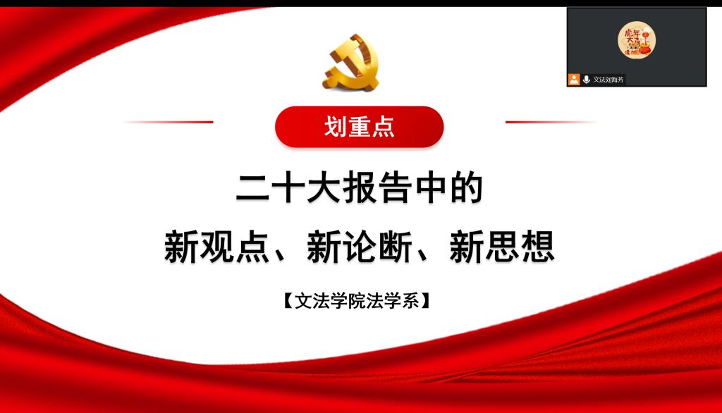 11月3日下午,英国上市公司365法学系党支部通过相聚云端的方式进行了“学习传达党的二十大精神”交流活动,气氛热烈,备受鼓舞。线上会议由支部书记刘海芳老师主持,法学系全体老师参与并进行了学习讨论活动。