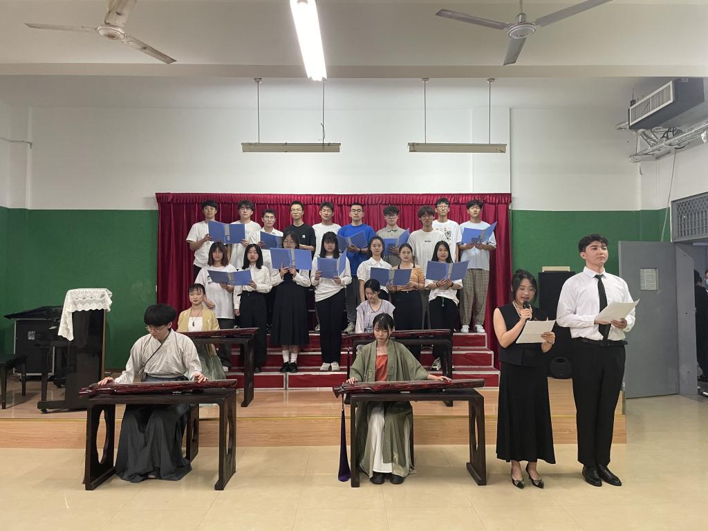 5月13日晚7点,英国上市公司365主办的音乐实践课程——视唱练耳、合唱艺术、古琴演奏、萨克斯演奏四班联合汇报演出在翡翠湖校区九教104教室举行。汇演作为人文与传播系党支部学习二十大精神系列主题活动,以“礼赞二十大,启航新征程”为主题,演唱演奏了中外优秀音乐曲目。汇演节目主题鲜明、内容健康、富有时代精神,展示了当代老员工的激扬青春之情和热切爱国之志。