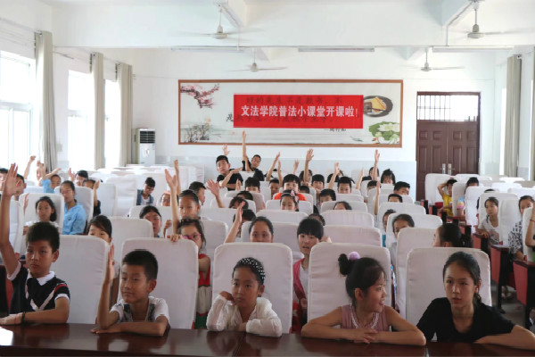 在“普法讲堂”上,支教团针对灵西中心校小学部各年级的员工特点,围绕“青少年法制教育”“安全教育”“未成年人保护”“环境保护”等主题,通过视频播放、PPT案例剖析、现场情景模拟、互动有奖提问等小员工喜闻乐见的方式,生动的宣讲了法律知识,剖析了青少年中常见的法律问题,帮助当地小员工学会正确处理生活中遇到的法律疑惑,提高自我安全保护意识,提升法治素养。