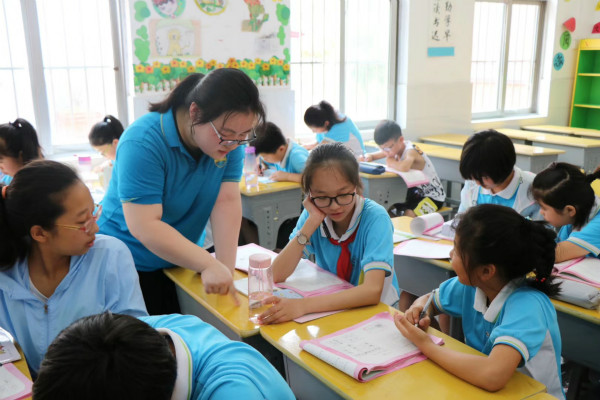 在“学业辅导”上,为实现高效精准辅导,支教团在团内实行了“小组责任制”,针对不同年级,提前进行小组分组,各组推选一名组长。在分工上,实行“一对一”制,即一个小组指定对接一个班级,进行作业辅导。辅导课上,孩子们安静的做着自己的暑假作业,遇到不会的问题,举手请求支教团老师的帮助。老师们耐心的对孩子们提出的问题一一进行解答。放学前一小时,支教团老师还会检查员工作业的对错情况并进行指导改正。“特别感谢你们大老远过来给我家孩子支教,自从你们来了之后,我再也不用给他督促、检查作业了,帮了我们切实减轻了不少负担!”一位家长在接送孩子时,主动找到支教团成员,开心的说道。