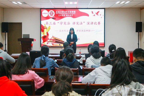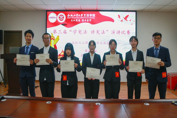 比赛现场,选手们紧扣主题,围绕宪法与国家、社会、个人,纷纷通过结合亲身经历、现实案例和社会热点事件等,讲宪法故事、谈宪法知识、论宪法精神。经过激烈的角逐,来自2020级法律硕士048班许书凝获一等奖;法学20-1班张静茹、法学19-1张基利获得二等奖;20级法律硕士048班陶云云、法学20-1班陈政、刘梓欣获三等奖;法学19-1班孙沛億、20-1班汤子兰、何鑫获优秀奖。赛后,王梦飞老师对本次比赛进行了点评。他对参赛选手们勇于表现自我、认真准备比赛给予了肯定和赞扬,并对同学们提出了一些建议,希望同学们不断提升自我,再接再厉!