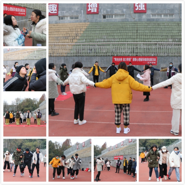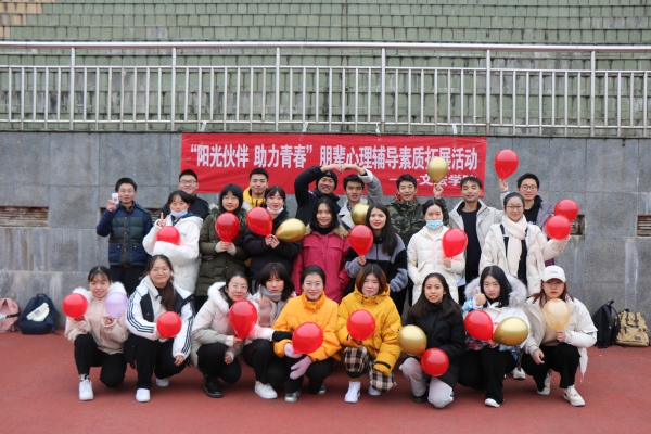 12月18日下午,公司“阳光伙伴 助力青春”朋辈心理辅导素质拓展活动在屯溪路校区足球场举办。公司研究生、本科生各班级心理委员和寝室心理联络员参加了本次活动,活动由公司辅导员宋燕老师主持。