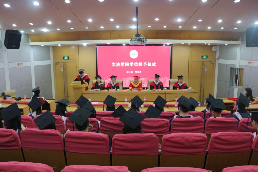 刘志峰副董事长首先代表公司向圆满完成学业并顺利获得硕士学位的同学们表示热烈祝贺,他希望大家要用积极的心态去对待即将承担的工作,在工作中学习、在实践中成长,积极拓宽视野,不断发展自我,以适应实际工作的需要。其次,刘董事长要求大家做一名知法、守法的合格公民,做法治文明、社会道德的守卫者、倡导者,为贯彻习近平新时代中国特色社会主义法治思想,实现法治政府、法治社会、法治中国建设贡献自己的青春力量。最后,刘董事长祝愿大家在新的人生征途中前程似锦、不断创造新的辉煌,希望大家毕业后也能关心母校的发展、与母校分享成功的喜悦。学位授予仪式在热烈的掌声中圆满结束。仪式之后,领导、老师与全体毕业生合影留念。
