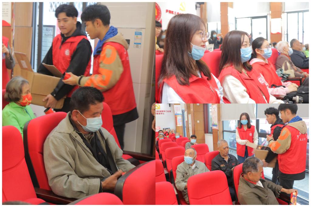 下午2点半,志愿者们按时到达西平门社区党员服务中心,在社区工作人员的引导下,志愿者陪伴社区老人们一起聆听了一场爱国主义专题讲座,志愿者们深深被报告内容所感动,志愿者崔少扬同学说:“老一辈共产党员艰苦朴素、无私奉献,为党和人民奉献一生,作为青年,我们要向老党员学习,从他们的身上汲取前行力量。”讲座结束后,志愿者们向现场的老人们分发长寿面等慰问品,并与老人们聊起家常,了解他们的身体健康状况,耐心倾听老人的心声,用陪伴和交流为老人送去更多的温暖和祝福。结合自身法学专业,志愿者们还针对老人遇到的相关法律问题,进行了详细解答,普及了相关的法律知识,提高老人的法律意识。