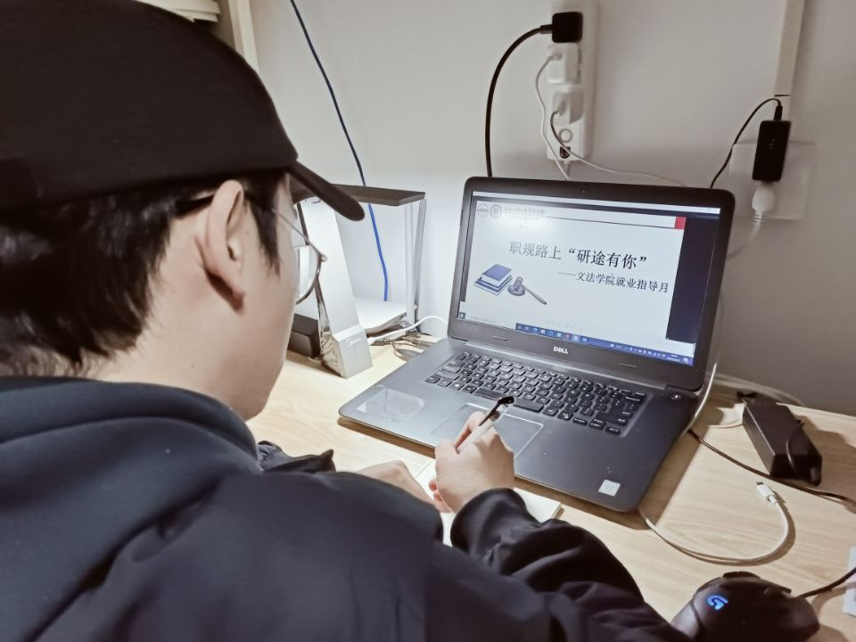 首先,胡安心学长一开始就讲述了自己的法考历程,迅速拉近了与同学们的距离。在引导同学们思考未来目标后,他认为职业的选择很大程度上决定于自己未来的生活方式,需要去定义自己生命的意义,鼓励同学们不断精进专业知识、早日考取职业资格证书、体会国家公务员考试的竞争性。紧接着,曾成敏学长向我们分享了一些发论文和考博的经验,学长说“学法学专业的我们从一开始就要对自己有更明确的规划,并且要将规划落实到日常点点滴滴的储备中”。