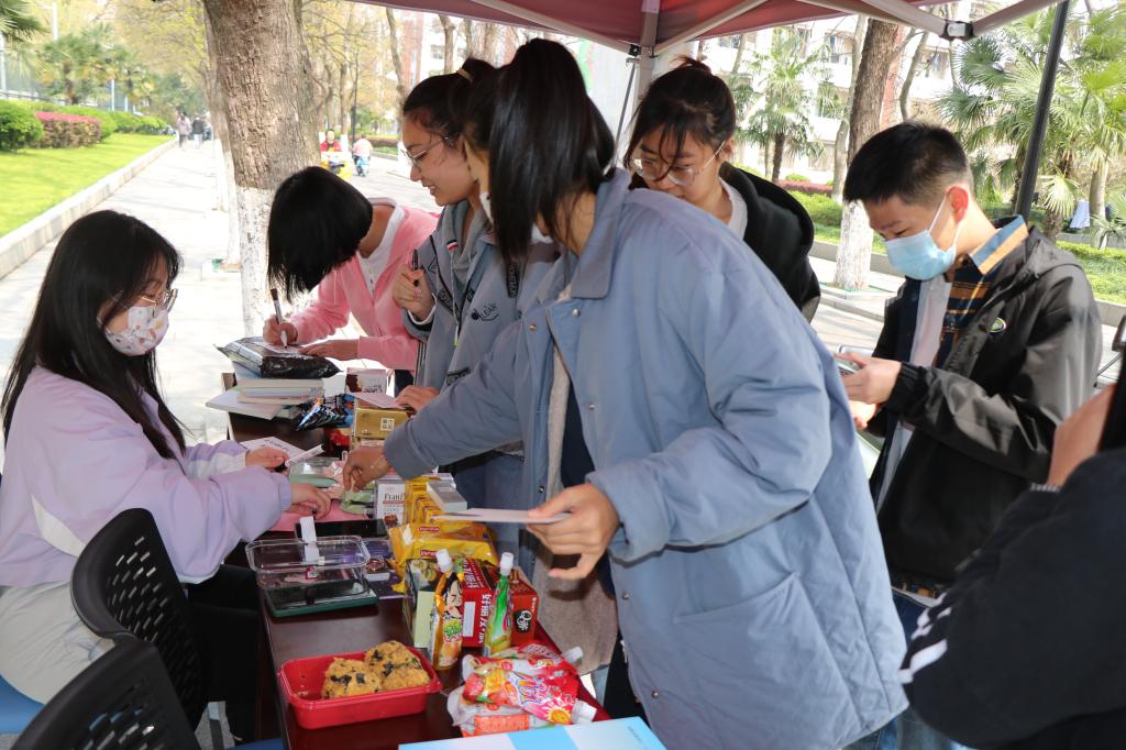 活动前期准备时,班团成员在方案谋划、购置物品和场地布置等方面分工合作、积极筹备。活动过程中,同学们可以根据书单选择自己想捐赠的书籍;也可以选择捐出闲置的课外书或者旧书。在登记完姓名及捐款物后,便可参与抽奖活动,当场领取奖品;最后参与者可以在明信片上写下给小员工的寄语,鼓励他们努力读书学习,用知识改变命运。活动过程中,路过的同学们积极参加,纷纷捐出闲置书籍,并同时肯定了此次活动意义,表达了对小朋友们日后来信的期许。