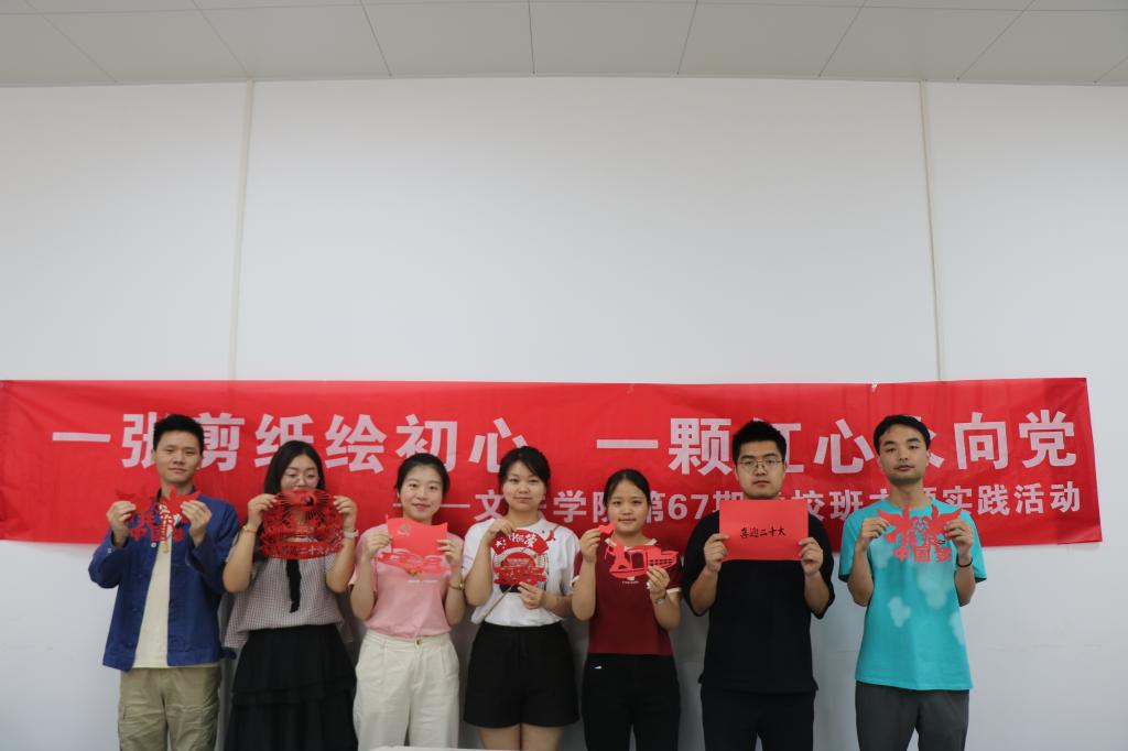 作为我国非物质文化遗产之一的剪纸艺术,主要通过刻刀勾勒美丽图案,寄托人们对生活的美好向往,是中华民族传统文化代代相传的重要载体之一。活动开始,学员们仔细聆听活动负责人对剪纸起源、剪纸发展、剪纸传承等方面的介绍,进一步加深对剪纸文化的了解。随后,在剪纸负责人的示范下,学员们跃跃欲试,迫不及待的开始创作自己的剪纸作品。一把剪刀、一把刻刀,一双巧手,一笔一画的描绘,小心翼翼的雕刻,大家相互交流、探讨。经过近一小时的创作,栩栩如生的图案跃然纸上,一幅幅作品被顺利的创作出来。学员们把对党史学习的感悟、中国梦的实现、二十大的期待融入了剪纸作品中,创做出“党旗飘飘”、“中国梦”、“喜迎二十大”、“红船”等共计10余件作品。看着自己创作出来的作品,学员们纷纷露出了笑容,并用手机拍照记录下这一难忘的时刻,将活动氛围推向了高潮。第67期预备党员班学员蒋雨桐说:“为了能够剪出贴合主题的作品,我和同学们一起重温了党史,并结合自身的感悟,将最能体现和最具代表性的红船以艺术的形式展示了出来。在加深自己对党史知识的学习和感悟之外,还亲手制作了一个艺术品,我觉得非常有意义。”