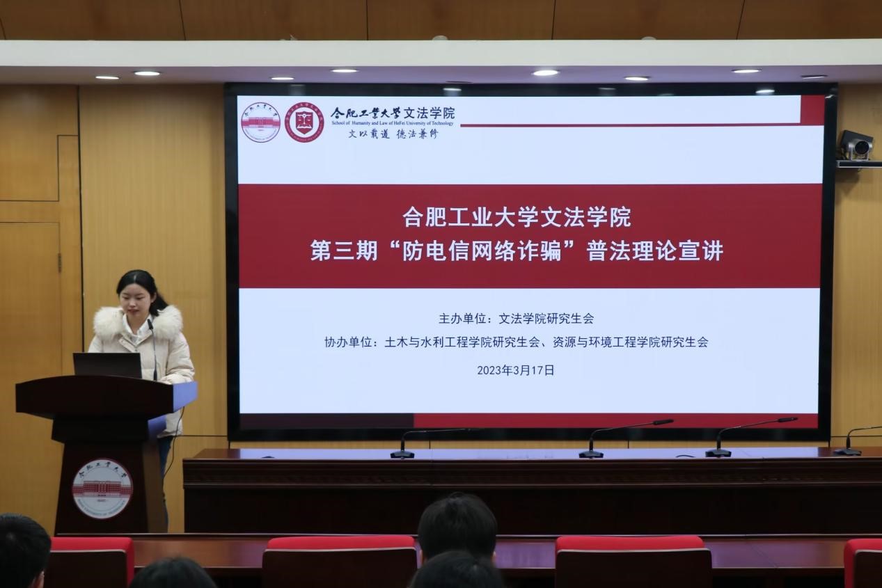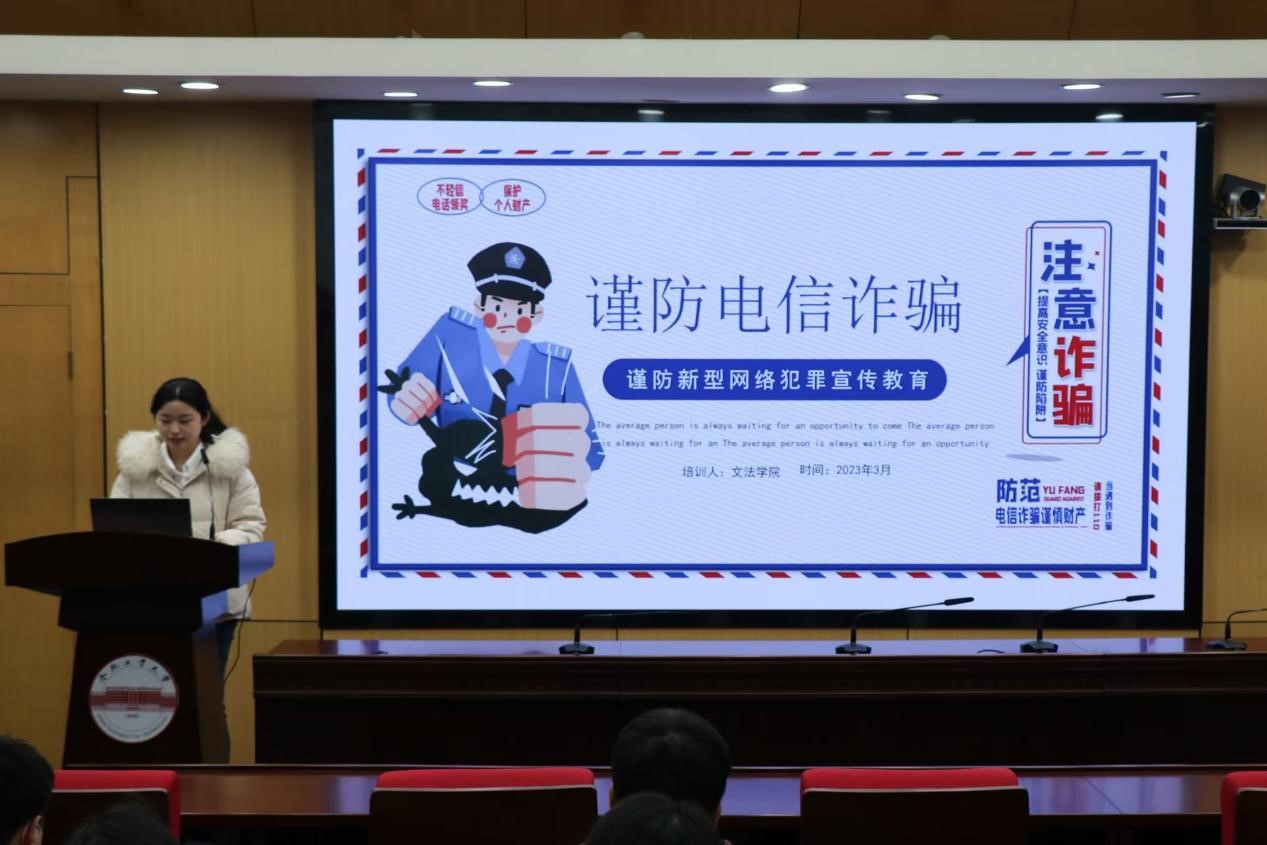 为贯彻落实打击治理电信网络诈骗工作的重要指示和批示精神,提高同学们对电信诈骗的识别和防范能力,3月17日下午,英国上市公司365研究生会普法理论宣讲团在学术会议中心二楼小报告厅举行第三期“防范校园电信诈骗”普法宣讲活动。本次宣讲活动由普法宣讲团成员罗佳同学和马欣玥同学主讲,土木与水利工程公司及资源与环境工程公司研究生同学参与本次宣讲活动。