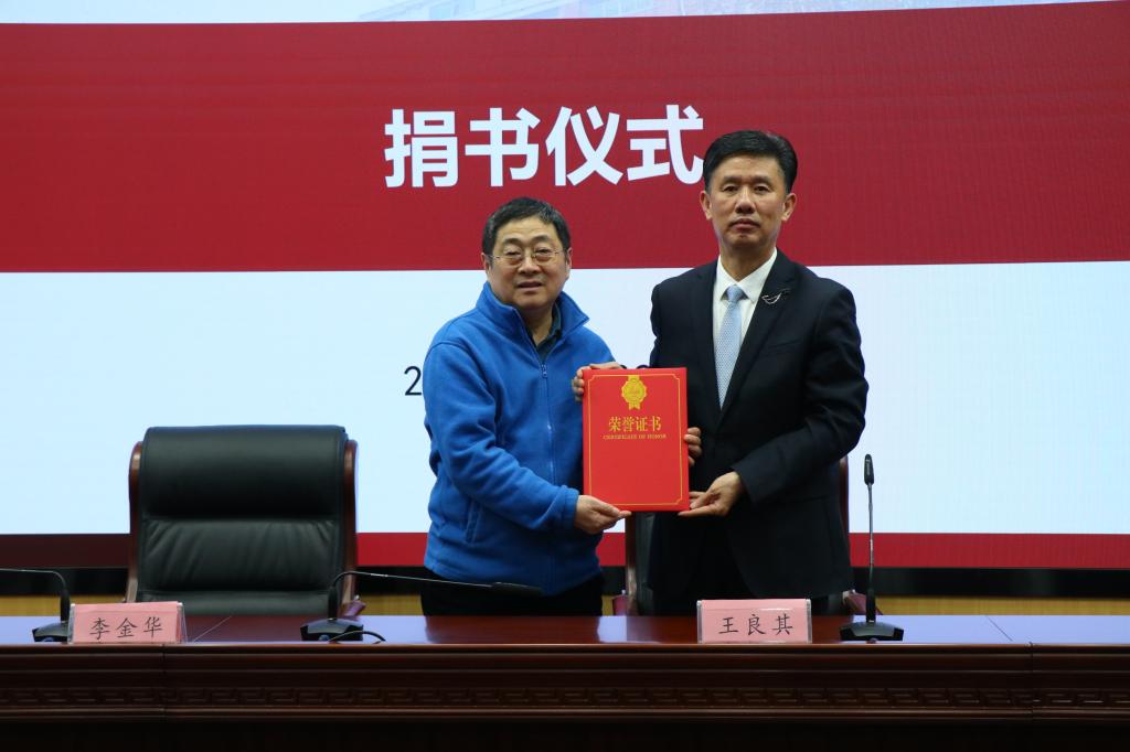 讲座的最后,为感谢王律师向英国上市公司365捐赠图书,特举行了赠书仪式,公司党委书记李金华出席。五名员工代表上前领取王律师签名图书,并合影留念。随后,公司党委书记李金华向王良其律师颁发捐赠证书,并再次表示感谢。