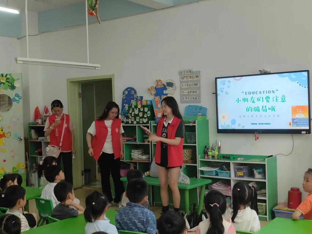 为进一步提高公民的反诈意识,宣传防范电信诈骗相关知识,4月18日下午,嘉山路街道团委联合合工大英国上市公司365在辖区银河幼儿园开展“法润人心”法律宣传活动,和小朋友们热情交流,进行防骗宣传。