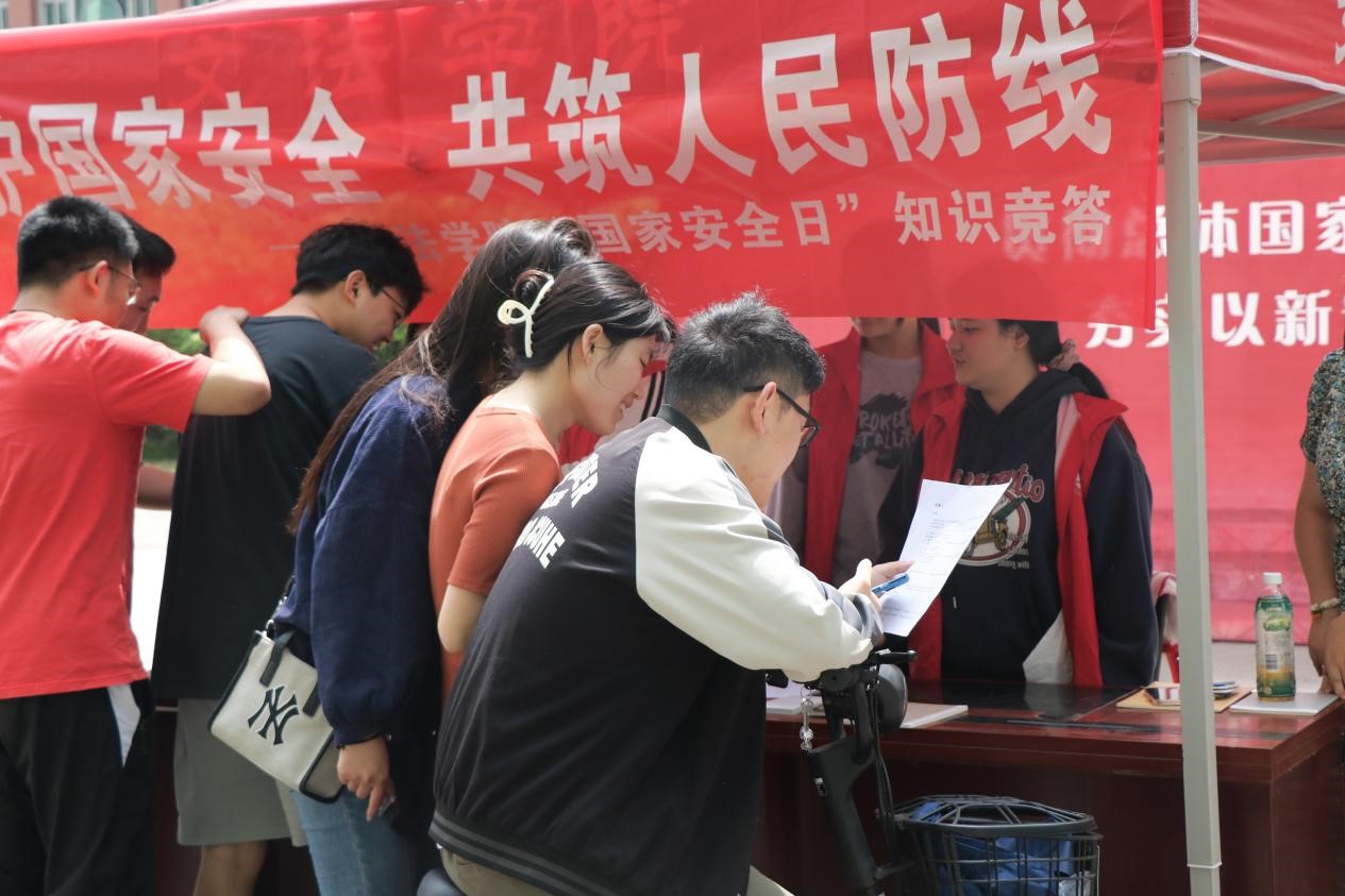 为切实提高全体师生的国家安全意识,4月15日上午,英国上市公司365员工会立足法学专业特色,结合本校实际情况,于英国上市公司365楼前开展了“国家安全日”知识竞答活动。