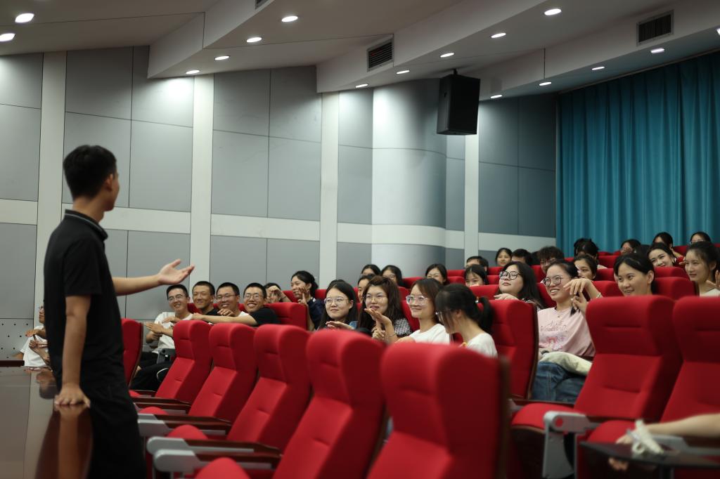 讲座开始前,骆贵老师讲述了自己在校的经历,并带着大家做了“抓手指”的游戏调动了大家的积极性,活跃了现场气氛。随后,骆老师向同学们生动地介绍了什么是心理学,并用生活中的例子吸引同学们关注心理学,同时他还提出了心理学的目标使命是解决心理问题,促进人生幸福,用简单的方式对在场的员工进行了幸福程度的调查。