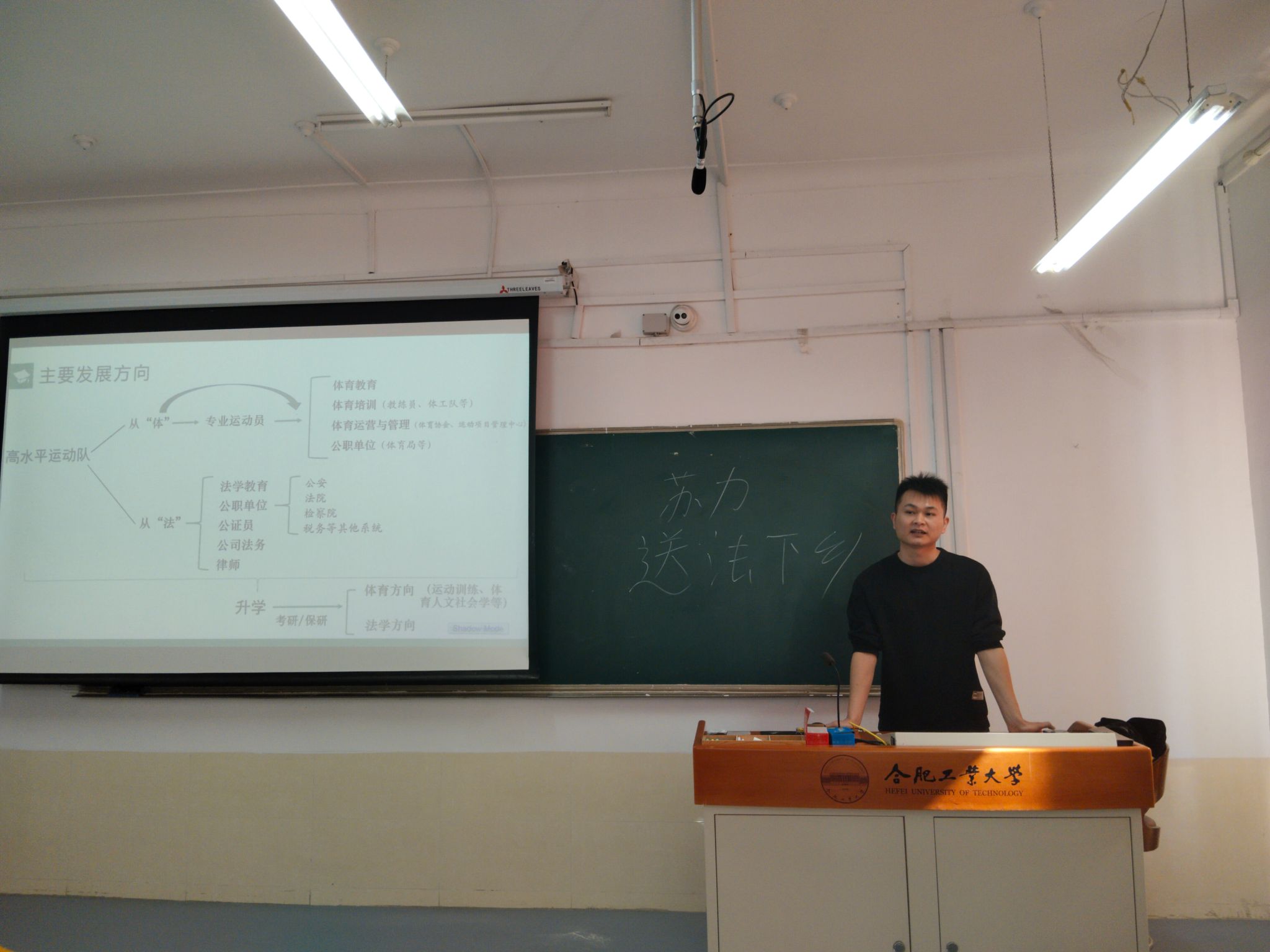 班会上,余昊哲向同学们阐释了尽早规划人生的原因,并要求同学们在未来四年在要学会适应老员工活,增强自我认知,明确职业目标,提升综合素质。接着余昊哲就23-1班高水平运动队的实际就业主要发展方向“体”“法”两个方面展开说明,在体育方面,余昊哲深入分析了体育特长生的优势,并希望同学们能够把“体”和“法”共同推进;在法学方面,余昊哲向同学们具体介绍了毕业后的主要就业方向,在介绍期间还了解了同学们以后的工作规划方向,并就相关同学做出了进一步的指导。最后余昊哲以“但行好事,莫问前程”八个字向同学们表示诚挚的愿想,希望同学们把握好四年老员工活,科学合理规划,为以后的人生发展奠定坚实的基础。