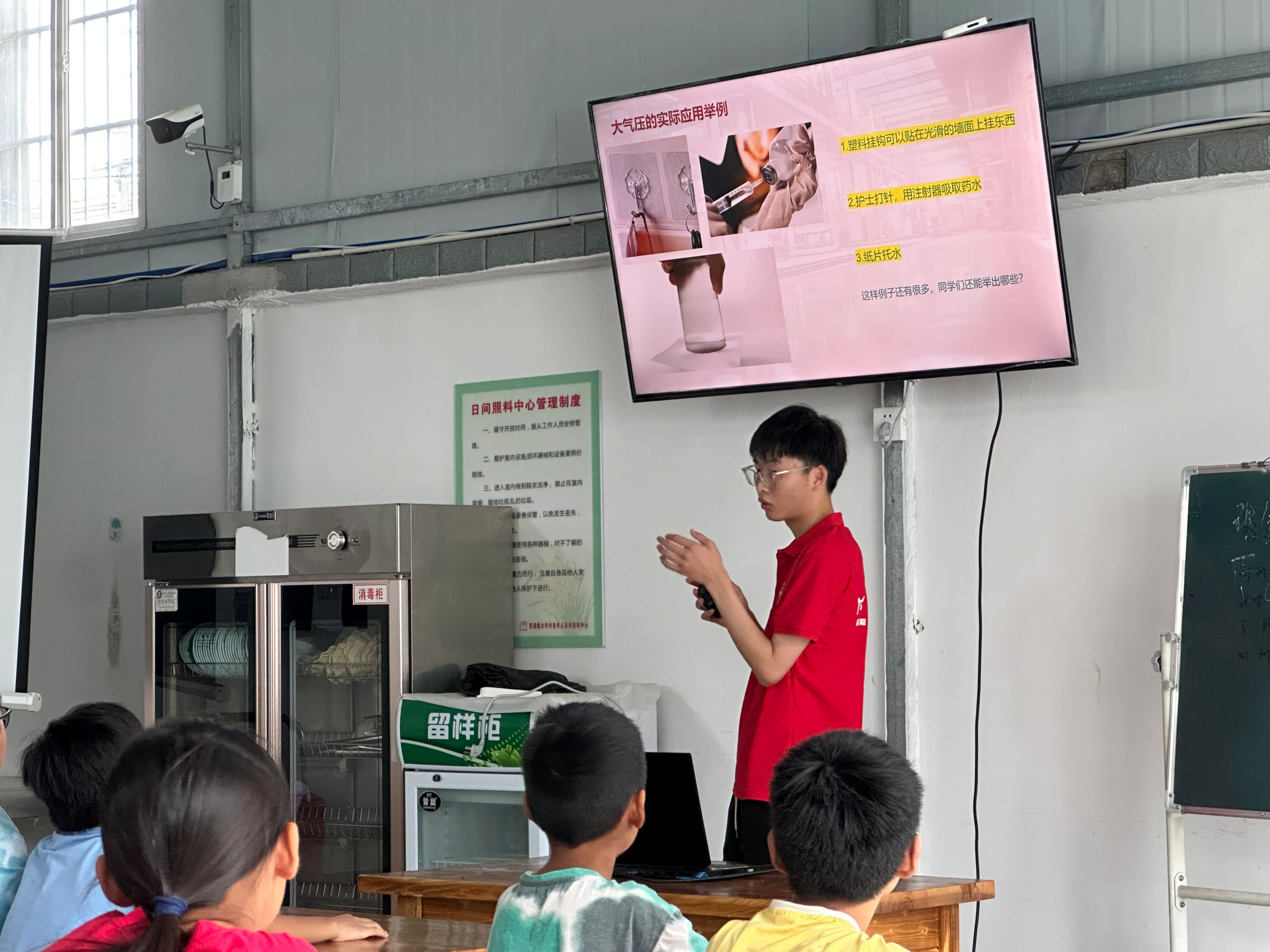 7月9日上午,支教活动正式拉开帷幕,团队成员王坤、刘恒宇按计划开展“旋转的纸杯”物理实验课,“乐器基础”基本乐理课程,带领孩子们感受物理与音乐的魅力。