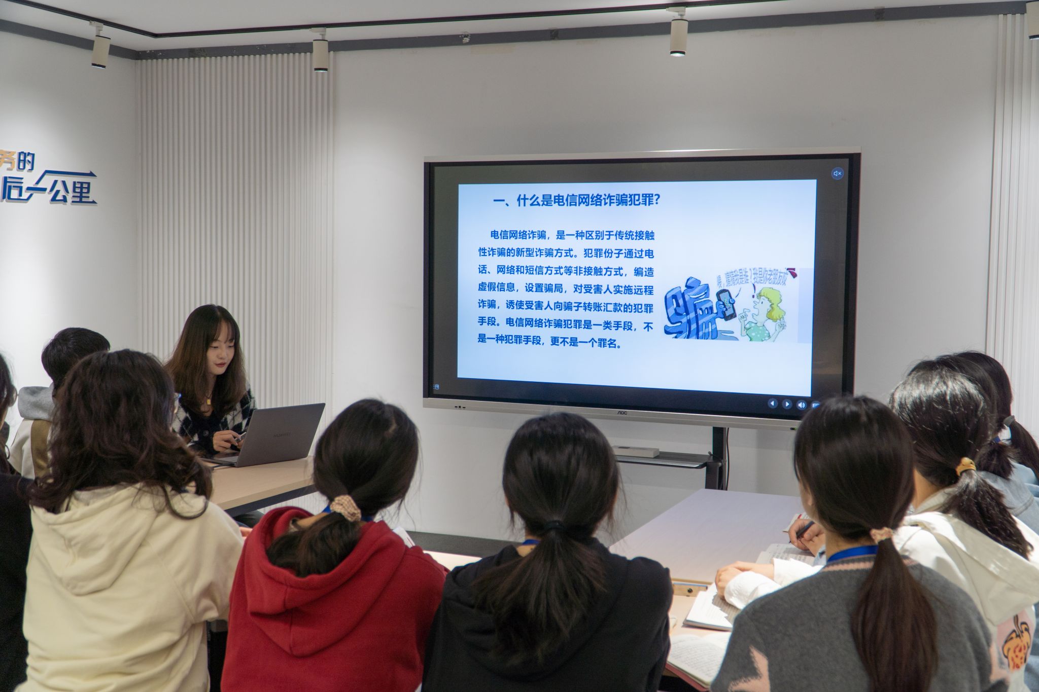 窦雯静同学从“电信诈骗”的概念、公众受骗原因和常见诈骗手法三个方面出发进行普法宣讲,向大家普及了新型诈骗形式和防范措施并强调随着互联网的不断发展,电信诈骗手段越发多样,同学们需要更加谨慎以防受骗。随后,窦雯静同学结合视频,生动形象地向我们介绍了常见的骗局形式。大家纷纷表示,新型诈骗层出不穷,我们在提升自身安全意识和防范能力的同时,也应发挥专业优势,为普法宣传贡献自己的一份力量。