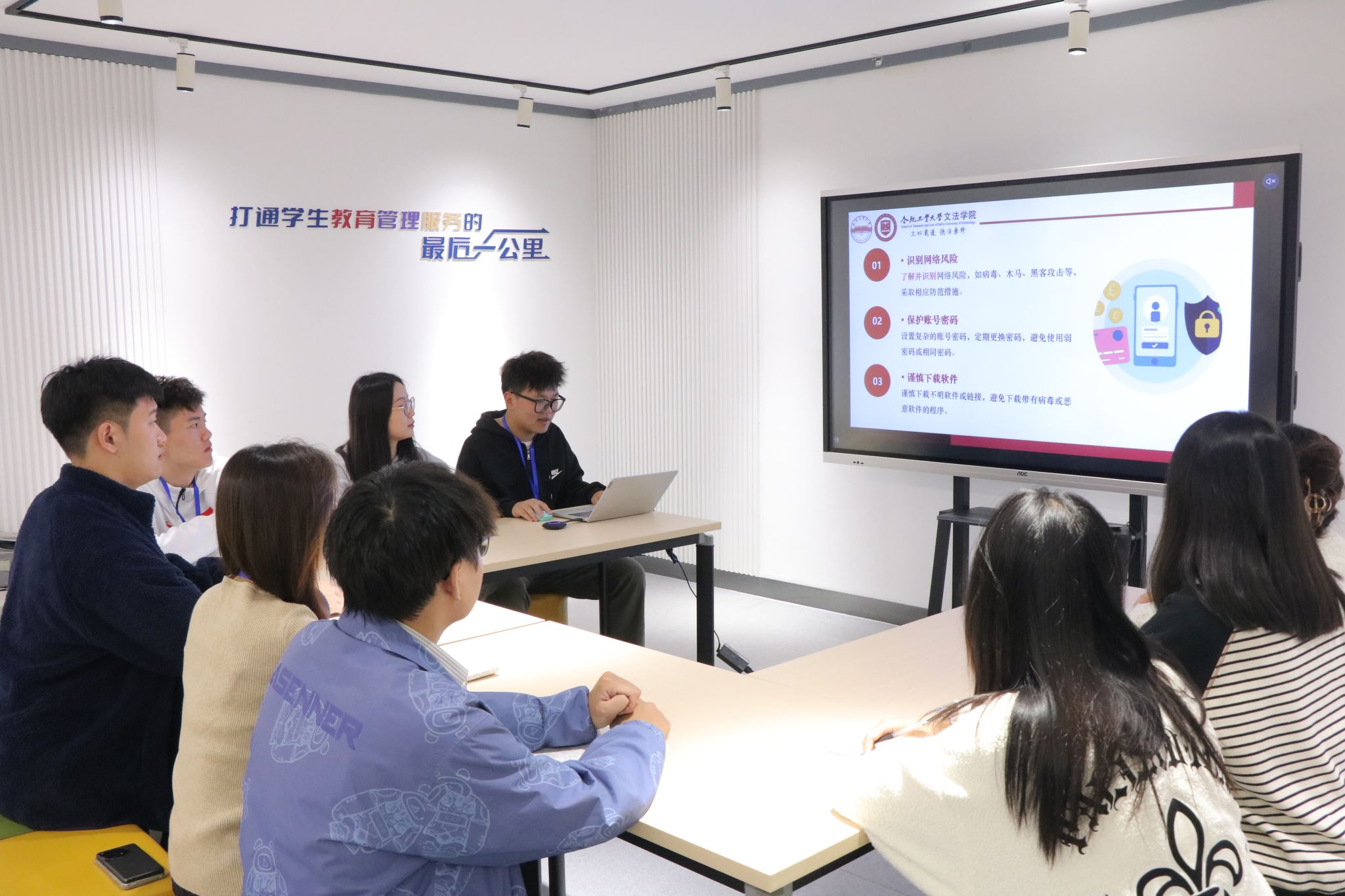 本次宣讲会由李豪同学和郑思怡同学主讲。李豪同学首先从网络安全的概念和典型案例出发,讲述了网络安全的重要性,网络安全在数据保护、隐私保护、犯罪预防、隐私保护、校园秩序等方面都有非常重要的作用。随后,介绍了网络安全的相关法律法规,呼吁大家树立正确的网络安全意识,掌握网络安全能力。郑思怡同学介绍了网络安全中的防范AI诈骗。从常见的AI诈骗手段和AI诈骗典型案例出发,向大家普及AI诈骗的相关内容,并提出一系列防范AI诈骗的措施,如多重验证、确认身份;保护信息,避免诱惑;相互提醒、共同防范等,呼吁大家提高安全意识,防范AI诈骗。最后,同学们针对网络安全问题展开了讨论,肖亚楠同学表示,作为法学专业的发展对象,应当发挥法学学科优势,在日常生活中保持警惕,增强网络安全意识。程催云同学表示,目前关于网络安全与防诈骗的宣传仍有待加强,自己作为新闻与传播专业的发展对象,在日常更应当在加强自身修养的前提下,做好网络安全与防诈骗宣传。