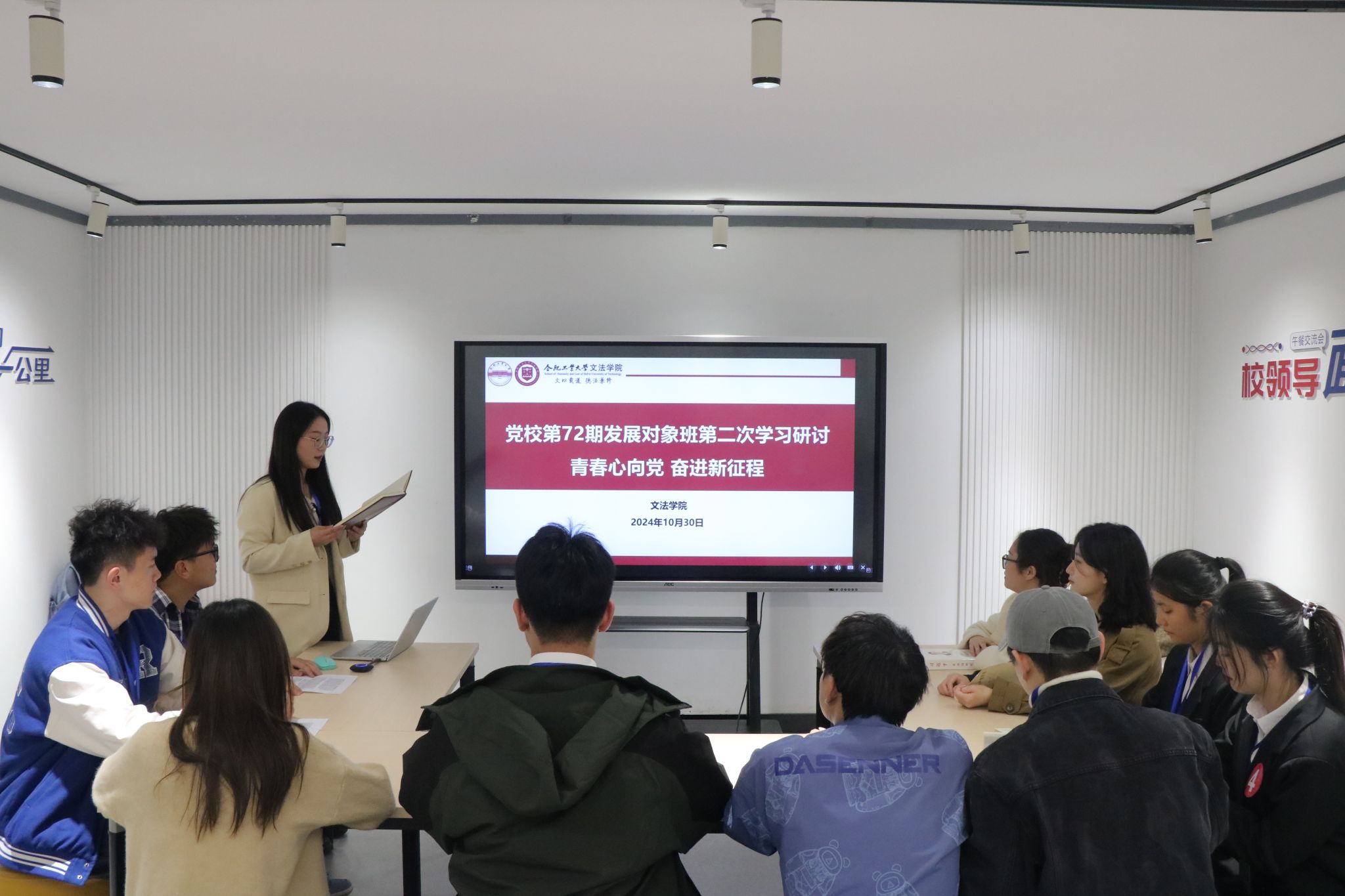 10月30日,公司党校第72期发展对象班在七号楼二楼员工社区开展了主题为“青春心向党,奋进新征程——学思感悟习近平总书记关于青年工作的重要思想”的理论学习研讨活动,旨在通过本次学习,加强发展对象班成员理想信念教育,团结引领大家永远跟党走。