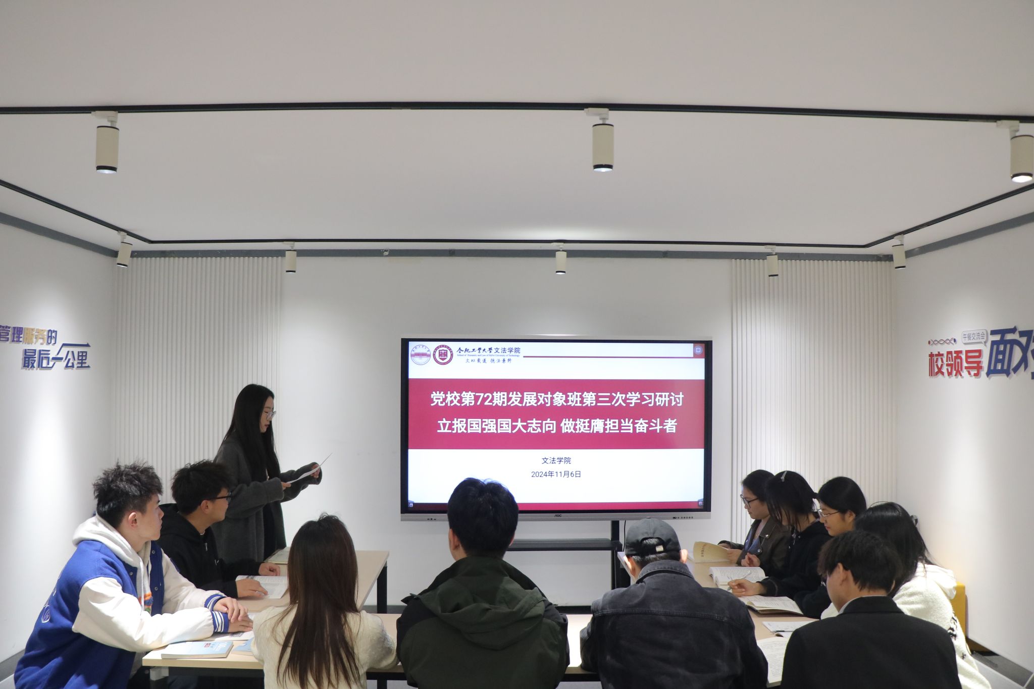 为提升发展对象班成员政治思想水平,11月6日,公司党校第72期发展对象班在七号楼二楼员工社区开展了主题为“立报国强国大志向,做挺硬担当奋斗者”的理论学习研讨活动,发展对象班全体成员参与本次活动。