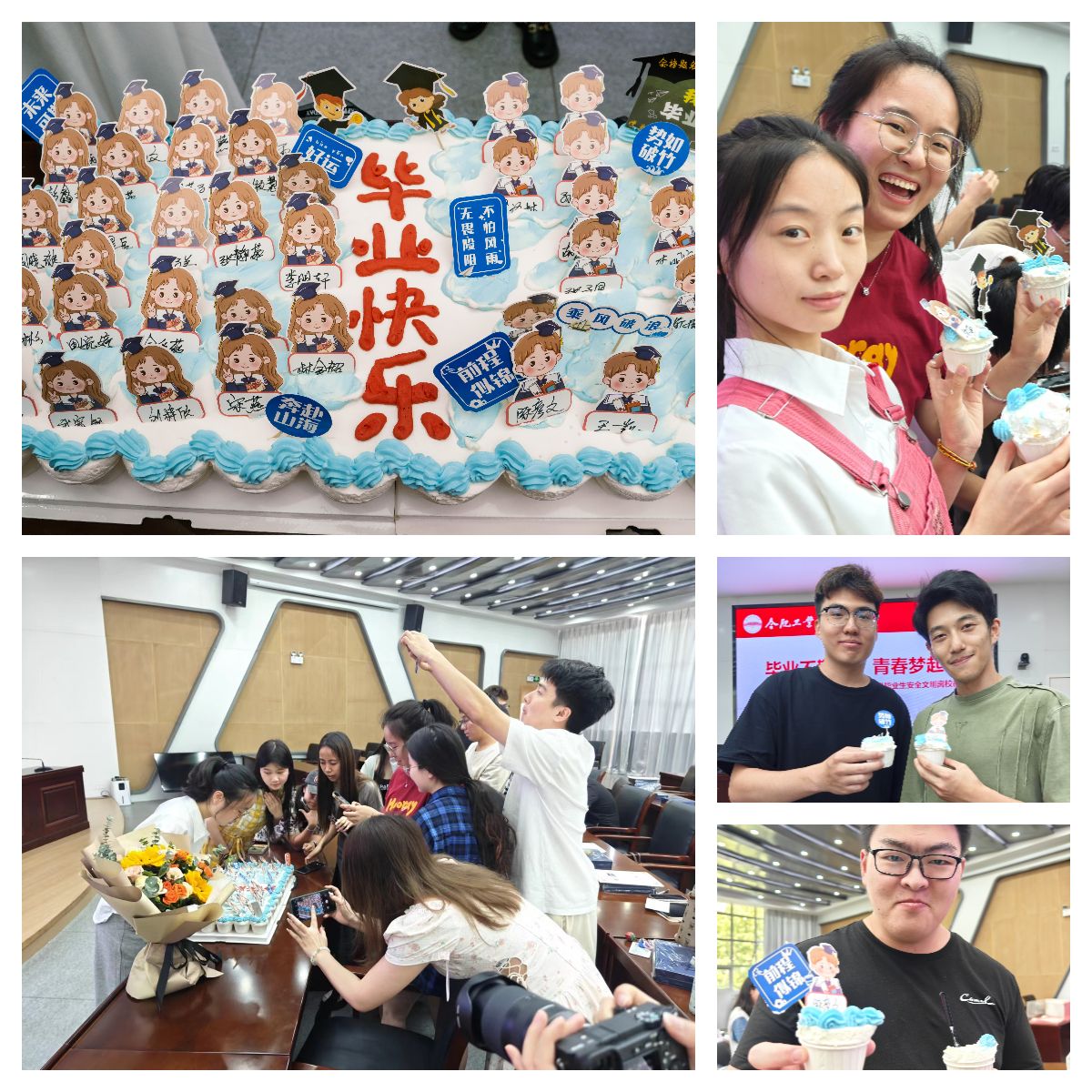 班会伊始,辅导员宋老师从回忆初入校园的场景谈起,从新生入校的“开学第一课”到毕业前夕的“大学最后一课”,期间是同学们的在工大度过的点点滴滴难忘的时光,是工大蓬勃发展与工大学子青春成长的相互见证,更是同学们与工大同行,奋楫勇进的成长历程。随后,班会正式开始,“回忆过往”环节,班长徐俊涛同学通过一个视频短片,带领四年同窗的同学们共同穿越时光,回顾了在工大,在英国上市公司365一起留下的难忘青春记忆,从青涩的新生到即将踏入社会的优秀青年,每一段经历都记录着同学们不懈的努力与成长,现场的同学们也被影像画面所感染,记忆彷佛回到了那段曾经的岁月。“感恩当下”环节,同学们纷纷拿起寄语卡片,认真写下对公司和老师的真挚的祝福与期望,话语的背后不仅承载着对未来的美好愿景,也表达了同学们对工大、对公司深深的眷恋和感激。“展望未来”环节,同学们主动发言,表达了对未来自己和同学们的期待。辅导员宋老师围绕党团组织关系转接、档案派遣、生源地贷款还贷,文明离校等进行讲解,希望同学们重视毕业相关安排,做好文明离校相关工作,希望同学们常回来看看。班主任刘海芳老师对现场的毕业生们提出了殷切期望,希望同学们保持终身学习的理念,不断提升自己的竞争力,以理性平和、阳光向上的心态迎接即将到来的挑战,祝愿2024届所有毕业生们满载母校、老师们的祝福和期望,心怀感恩再出发,为社会贡献青春力量!班会的结尾,在场师生共同分享了象征祝福和圆满的蛋糕。班会还穿插了互动游戏环节,现场气氛轻松而愉悦,在欢声笑语中,师生们一起度过了温馨美好的最后一课。