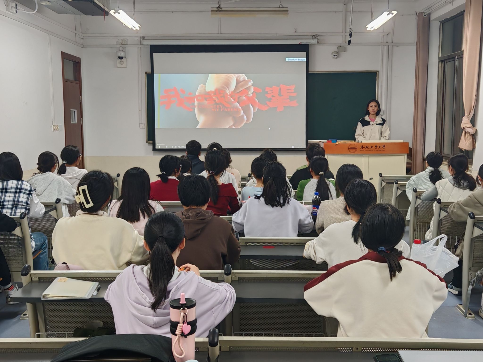 活动伊始,同学们怀着无比激动的心情,齐声高唱中华人民共和国国歌,激昂的旋律瞬间点燃了现场的爱国氛围。随后,活动紧密围绕“新中国成立的伟大意义”、“75年的光辉历程”以及“新时代中国青年的奋斗方向”三个核心方面展开,全面展现了新中国自成立以来的沧桑巨变,从建国初期的艰难困苦到现代化建设的蓬勃发展,每一个历史瞬间都深深触动了在场每一位同学的心灵。接着,大家一同观看了影片《我和我的父辈》。通过这部感人至深的影片,同学们仿佛穿越时空,亲历了几代人的奋斗历程,心中涌动的爱国之情愈发强烈,久久不能平息。活动接近尾声,团支书徐悦媛进行总结讲话,倡议现场同学,面对未来无数的挑战,我们每个人都应以积极向上的态度认真对待,遵循党的二十届三中全会精神,迎难而上,勇往直前,为实现中华民族伟大复兴贡献自己的青春力量。同学们纷纷表示,将以此次团日活动为契机,积极向党组织靠拢,努力成为有理想、有担当、能吃苦、肯奋斗的新时代好青年。在自己的专业领域内不懈奋斗,为中国梦的实现添砖加瓦,贡献自己的力量!