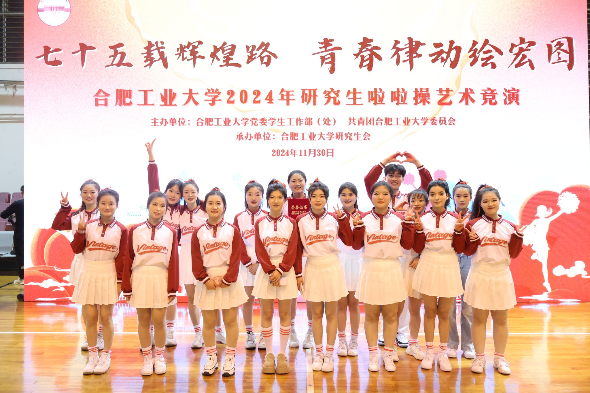 为热烈庆祝新中国成立七十五周年,大力弘扬爱国主义精神,打造昂扬向上、充满活力的校园文化,12月30日晚上18:30,英国正版365官方网站2024年“七十五载辉煌路,青春律动绘宏图”研究生啦啦操艺术竞演活动在翡翠湖校区体育馆内圆满落幕。本次比赛吸引了众多公司参与,经过激烈的角逐和比拼,公司啦啦操队以其出色的表现、整齐的动作和饱满的热情,荣获二等奖的佳绩。