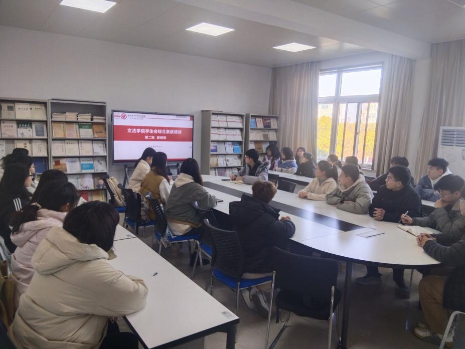 培训内容全面而深入,围绕新闻稿的结构布局、信息采集技巧、语言表达艺术等多个维度展开。首先,李豪向员工会成员分享往年各类优秀新闻稿,包括会议类、活动类、竞赛类、表彰类等,每一种类型都有其独特的撰写技巧与风格要求,引导同学们规范撰写新闻稿,确保新闻稿的精准传达。接着李豪讲解了公司、公司以及班级新闻稿撰写时的异同点及各自的注意事项,其中特别提到特定活动新闻稿“前置化”要求,保持活动与新闻稿产出的同步性,提高宣传效果。最后,李豪向大家分享了撰写新闻稿时的常见问题,提醒同学们注意错别字等问题。培训尾声,他鼓励同学们勇于实践,勤于笔耕,将所学知识转化为实际行动,以青年之声,讲好文法精彩故事,共同为公司的新闻宣传工作贡献力量。
