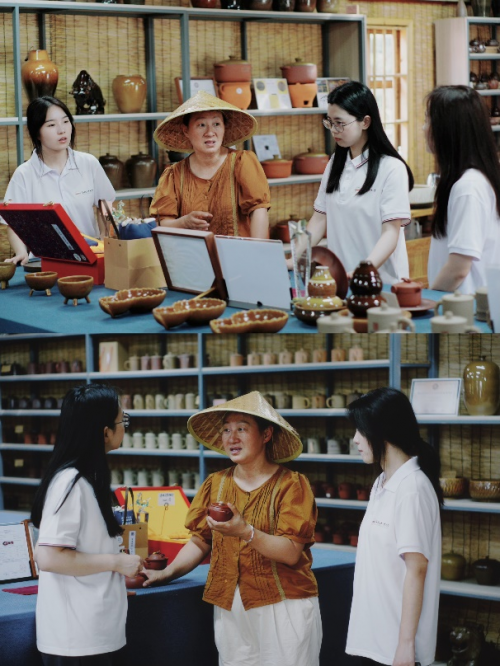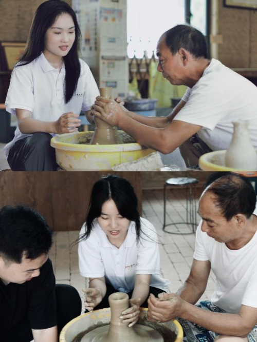 在调研过程中,团队成员还特别采访了痘姆古陶基地的一位特殊工匠——聋哑匠人程海龙。尽管夏日炎热,他依然坚守在制作古陶制品的岗位上,精心雕刻每一件作品。工作人员介绍到,痘姆古陶基地在为传承古陶技艺的同时,也积极为特殊群体提供就业机会,帮助他们解决生活中的实际困难。当天下午,团队成员在古陶大师涂胜友的亲手指导下,深入体验了古陶制作的全过程。在涂大师的悉心指导下,成员们亲自参与每一个环节,顺利完成了古陶的制作。这次实践活动不仅加深了成员们对传统文化的理解,也增强了他们对文化传承的责任感。