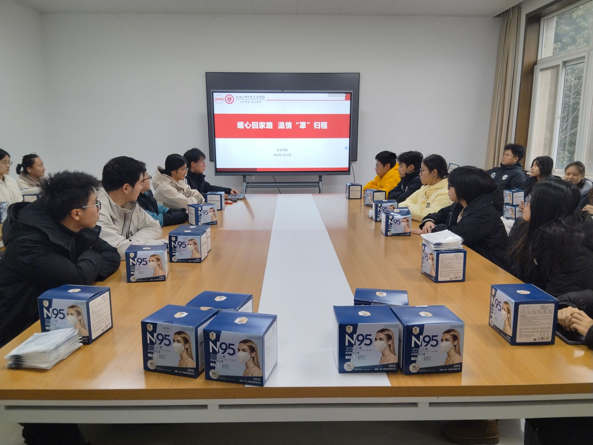 寒假将至,文法学子怀揣着对家的思念,即将踏上返乡归程。1月14日,公司统筹安排,组织员工在公司楼310开展“暖心回家路,温情‘罩’归程”暖心口罩发放活动,为员工返乡之路提供安全保障。