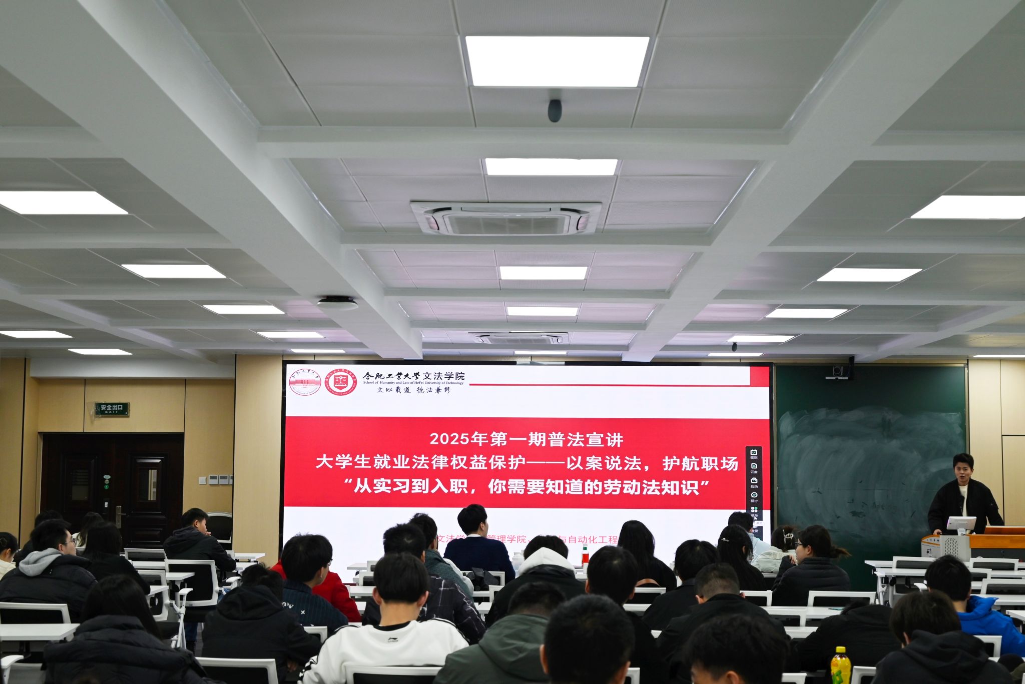 接下来,他紧密结合劳动法中具体法律规定以及典型案例,细致讲解、回答了如何识别劳动合同签订过程中的陷阱以及怎样拿起法律武器积极维护自身权益。在活动的尾声,他强调,在老员工的实习与就业旅程中,劳动法像是一艘“护航舰”,为同学们的权益保驾护航,它不仅规范了劳动关系,更让同学们在职场中能够有尊严、有保障地工作与成长。