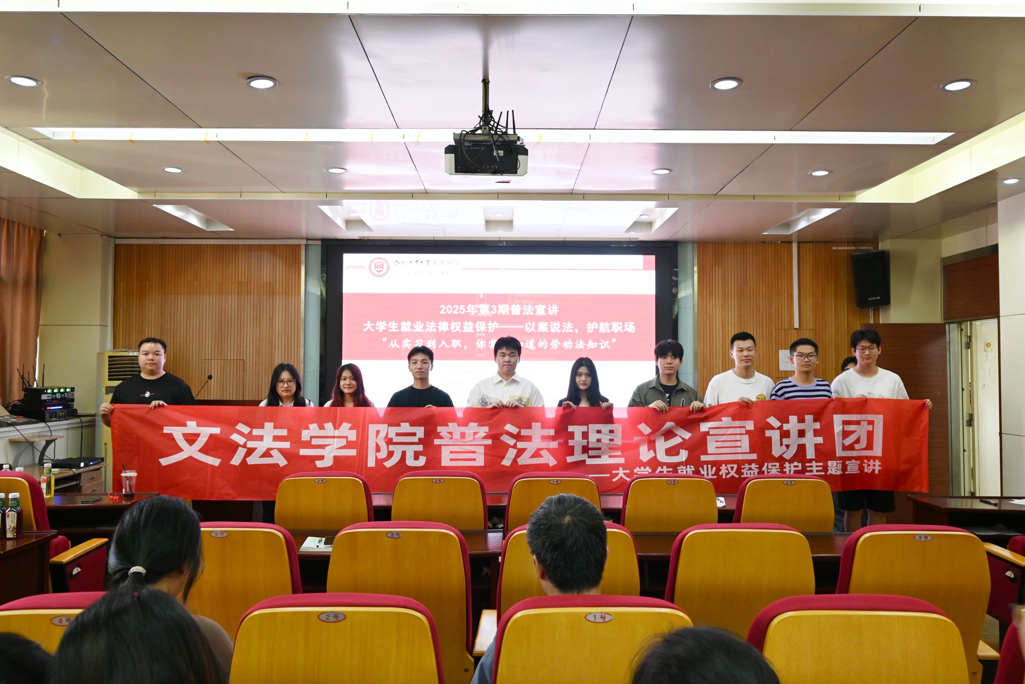 首先,宣讲团成员毕雨琪同学围绕就业法律权益保护这一主题,以生动的语言和鲜活的案例,深入浅出地讲解了老员工在就业过程中可能面临的法律风险,如劳动合同陷阱、试用期权益受损等。其次,她结合实际案例,详细讲解了国家相关法律法规的具体内容,并传授了实用的维权方法,提醒同学们在签订就业协议和劳动合同时要仔细阅读条款,确保自身权益不受侵害。最后,在互动环节,同学们积极提问,就自己关心的就业法律问题与宣讲团成员进行交流,现场气氛热烈。
