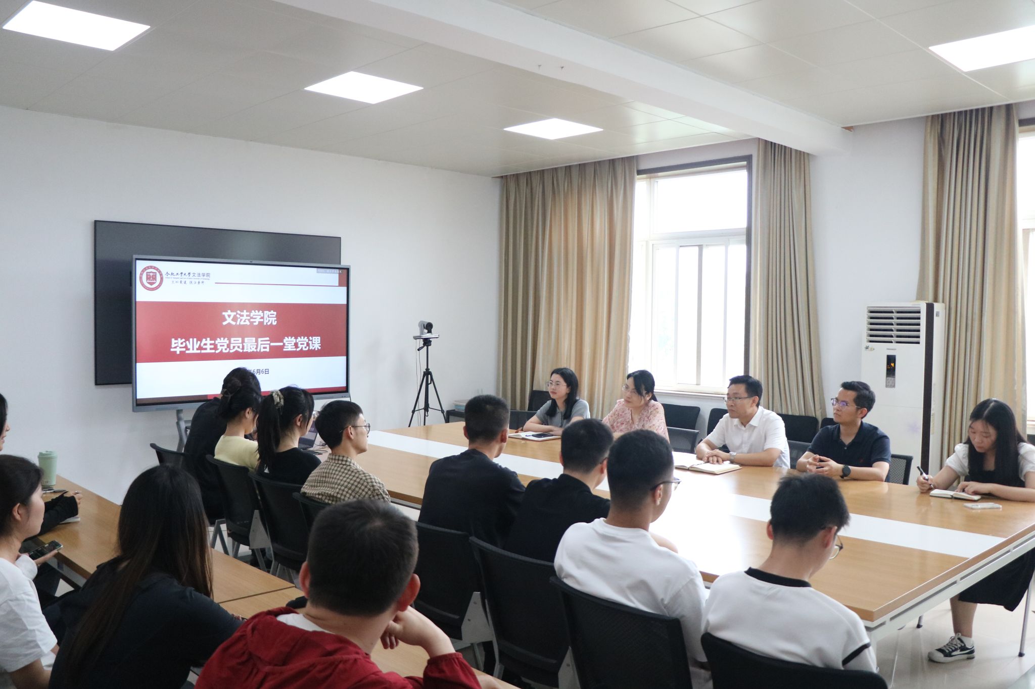 为强化毕业生党员理想信念教育,6月6日下午,在公司楼310会议室给毕业生党员讲授最后一堂党课,公司党委书记宋之帅、党委副书记兼纪委书记钟敏、毕业班导师及全体毕业班研究生党员参加。