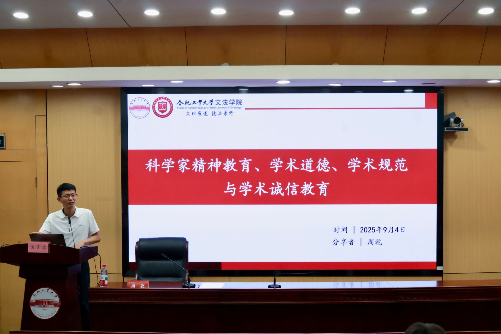 为强化研究生学术规范意识,9月4日下午,公司召开学术诚信教育专题会议,会议由公司副经理周乾主讲,公司2025级全体研究生参与。