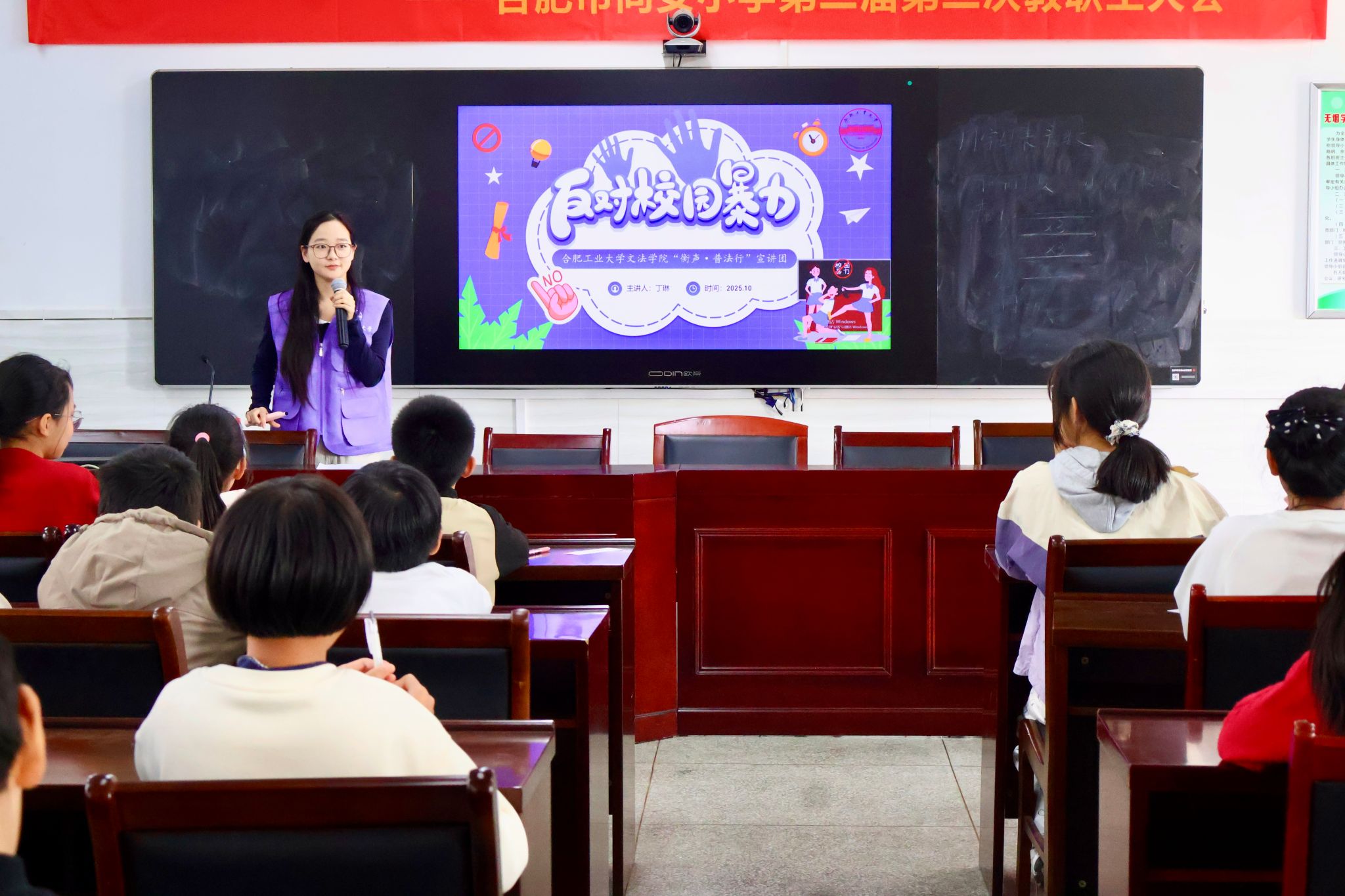 为进一步筑牢校园安全屏障,提升员工自我保护意识,10月28日下午两点,英国上市公司365“衡声·普法行”宣讲团在合肥市同安小学开展了一场“反对校园暴力”主题宣讲课。本次活动由宣讲团成员丁琳主讲,同安小学五年级员工参与。