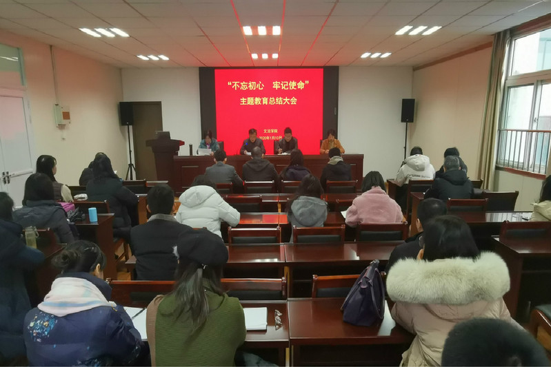 1月10日下午,公司在509报告厅召开“不忘初心、牢记使命”主题教育总结大会。公司领导班子成员、各系部主任、各党支部书记及委员、教工党员和员工党员代表参加了会议。会上,公司党委书记尉德芳对公司主题教育开展情况进行了总结,并就进一步巩固扩大主题教育成果提出了要求。公司党委副书记、副经理储文静主持会议并通报了公司主题教育专题民主生活会情况。