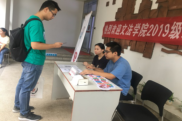 9月5日上午,负责研究生迎新工作的老师和员工助理便早早赶到迎新地点,在老师的指导下布置好迎新现场,提前整理并检查好新生报到后需领取的材料,以饱满的热情等待2019级研究生新同学们的到来。