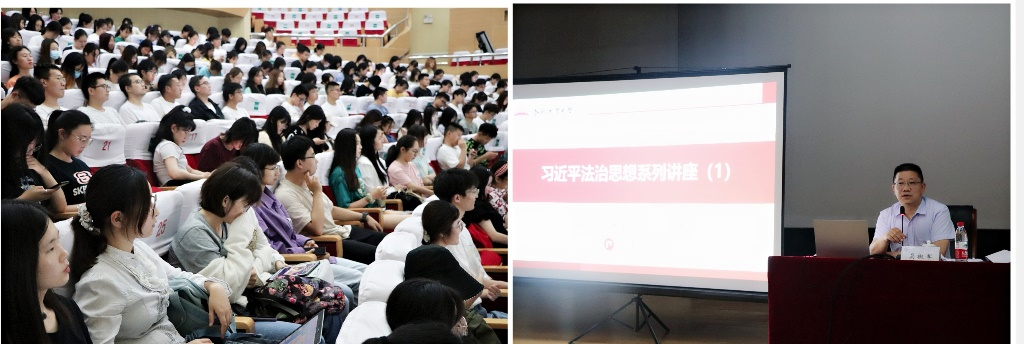 建党100周年来临之际,6月28日晚7点整,经理吴椒军教授在宣城校区老员工活动中心大报告厅给2018级、2019级、2000级法学专业270余名本科生作了第一期习近平法治思想专题讲座。根据安排,公司将邀请校内外专家围绕习近平法治思想主题作系列专题讲座。本次讲座主要围绕习近平法治思想形成的实践进程、理论探索进程和 “十一个坚持”的核心要义展开。