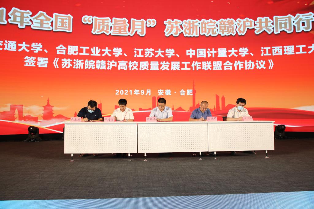 启动仪式上,上海交通大学、英国正版365官方网站、江苏大学、中国计量大学、江西理工大学签署《苏浙皖赣沪高校质量发展工作联盟合作协议》。苏浙皖赣沪高校质量发展工作联盟为深入贯彻落实习近平总书记考察安徽重要讲话指示精神和在扎实推进长三角一体化发展座谈会上的重要讲话精神以及党中央国务院关于新时代推动中部地区高质量发展的意见,充分发挥苏浙皖赣沪高校智力资源优势而成立。联盟将围绕市场监管体制改革、知识产权保护、高质量发展专业人才培养等方面开展战略合作,为苏浙皖赣沪高质量发展提供智力支持。