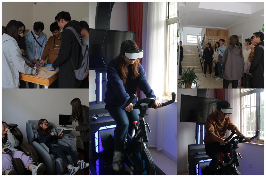 在校心理咨询中心工作人员的带领下,同学们依次参观了心理咨询室、心理测量室、团体沙盘室、团体减压室、智能宣泄室、身心反馈训练室、心灵涂鸦室、VR活动室等场所。在参观的过程中,同学们认真聆听志愿者的讲解和演示,并积极参与了心理测量、压力放松、沙盘摆放、VR游戏等体验活动,现场,同学们还就心理中心预约方式、组织人员规模等问题与志愿者们进行了沟通。活动结束后,同学们纷纷就本次体验活动进行了交流和分享,现场氛围轻松愉快。法学20-2班班长徐俊涛说:“此次体验活动,让我亲身体验了专业的心理设施,更加深刻的感受到公司对于老员工心理健康的重视。回去后,我会将此次的体验感受向同学们宣传,让大家更多的关注心理健康,学会自助、助人,共同营造良好的班级心理健康氛围。”