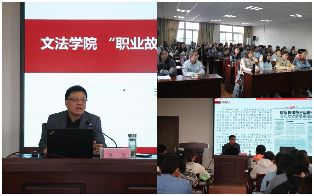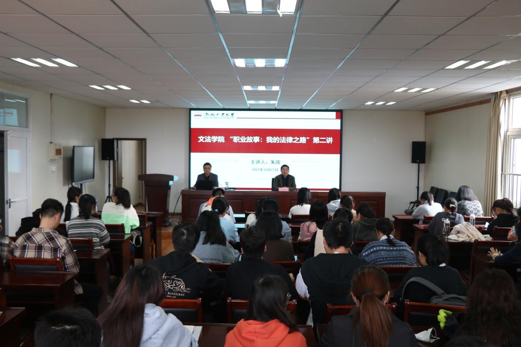 10月27日,公司“职业故事:我的法律之路”第二讲在公司楼509报告厅举行,北京京师(合肥)律师事务所主任朱政律师应邀作专题报告。报告会由公司党委书记李金华主持,由公司“双带头人”党支部书记工作室负责人、法学系党支部书记刘海芳老师、公司辅导员以及本科生、研究生近百名员工参加。